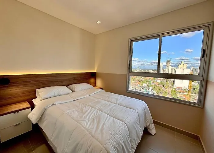 O alojamento está equipado com cozinha totalmente equipada para aqueles que desejam preparar as suas próprias refeições. Os hóspedes podem jantar no o bar Carmelitas Center, localizado a 7 minutos de distância andando. Os hóspedes podem aceder ao aeroporto de Assunção em 15 minutos de carro. O apartamento proporciona comodidades de luxo, incluindo terraço e jardim para garantir o máximo relaxamento. Depois de um dia repleto de atividades, relaxar na piscina privada é uma perfeita opção.